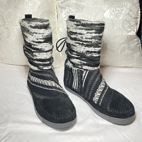 TOMS Nepal Mixed Woven Fleece Lined Suede Moccasin Boots