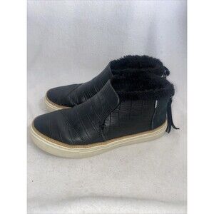 TOMS PAXTON Leather Suede Crocodile Embossment SLIP ON ANKLE BOOT 7 Faux Fur