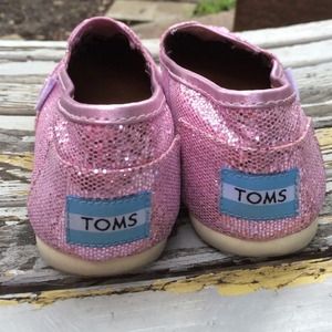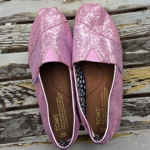 Bright pink sparkling TOMS shoes. Gently worn and still really nice. Great for everyday. Size 6