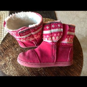 TOMS PINK SUEDE BOOTS SIZE 9, GENTLY USED, VERY COMFORTABLE, DAUGHTER LOVED THEM, COME FROM A SMOKE FREE HOME