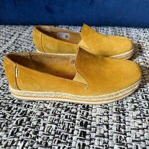 TOMS Palma Slip-On Mustard Suede Espadrilles Alpargatas Comfort Shoes Size 8
