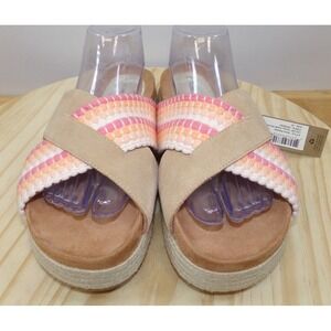 TOMS Paloma Woven Trim Espadrille Slide Sandals Womens Honey Suede Size 10 NWT