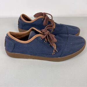 TOMS Paseo Canvas Low Top Lace Up Casual Shoes Blue Brown Men's Size 7 Unisex