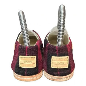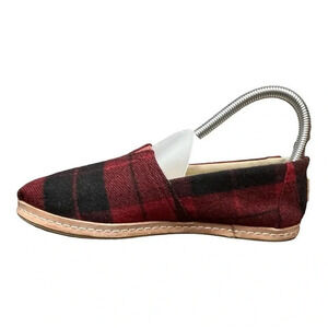 TOMS RED PLAID FELT ON LEATHER ALPARGATA FLAT SLIP-ON SHOES WOMEN'S SIZE 6