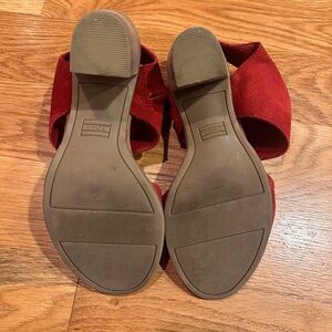 Chic red suede sandals by TOMS. Ideal for casual outings.