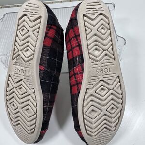 TOMS Red Tartan Printed Felt / Faux Fur Alpargata Slip On Shoes Sz 9 Women.