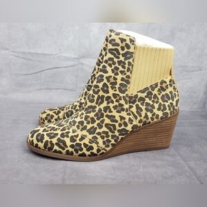 TOMS Sadie Tan Classic Leopard print Suede Women's Wedge heel Boot Size 8.5