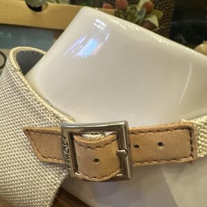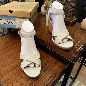 TOMS Sandals New Womens 10 Ankle Strap Natural Cork Sienna Wedge Beige Canvas Brand new in original packaging