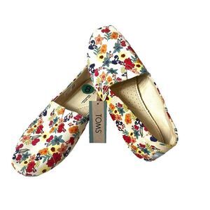 TOMS Shoes Women Size 8 Slip On Comfort Casual Flat Floral Multicolor Fabric New