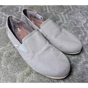 TOMS Shoes Womens 12 Redondo Casual Slip On Loafer Flats Grey Canvas Comfort, minimal signs of wear, gently used, good condition.
