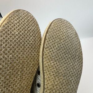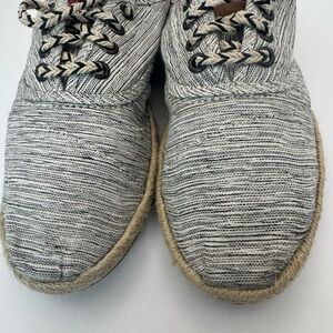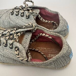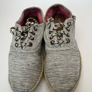 TOMS Shoes Womens 7 Ivory Black Striped Shoes 4 Eyelet Style Slip On Flat