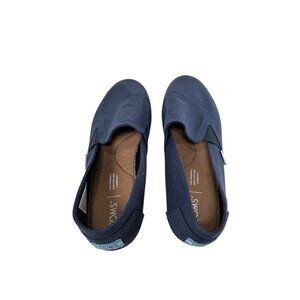 TOMS Shoes Womens Sz 7 Slip Ons Navy Blue Canvas Boho Chic Casual Party Normcore