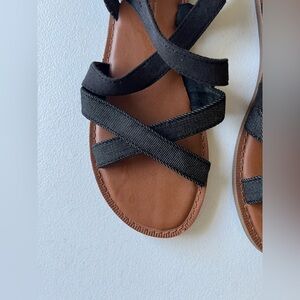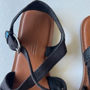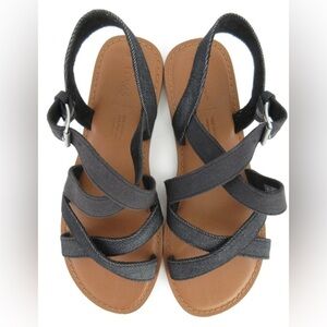 TOMS Sicily Black Canvas Denim Sandals Size 8.5