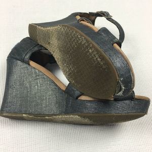 TOMS Sienna Metallic Blue Strappy Wedge Sandal 8.5