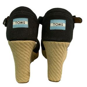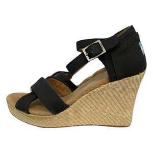 TOMS Sierra Strappy Espadrille Sandals Black Canvas Cork Bottom Wedge 10