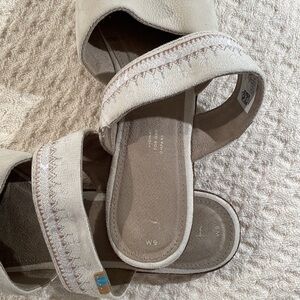 TOMS Soft Pebbled Leather Flat Mule With Decorative Strap Across