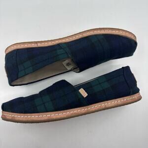 TOMS Spruce Tartan Plaid Felt WMNS Classic Flats Navy/Green US 8 Loafers Slip On
