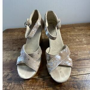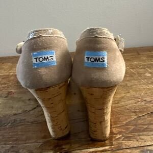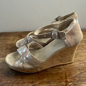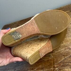 TOMS Strappy Canvas Cork Wedge Heel Cuff Platform Sandals‎ Crisscross