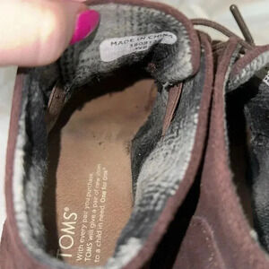 TOMS Suede Lace Up Desert Neutral lace up Wedge Booties boots shoes. A pretty Chocolate Brown color, Size 8, round toe, wedge heel, excellent condition. Heel height approx. 2.5”. Retails for $89.