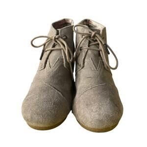 TOMS Suede Lace-Up Wedge Booties Taupe Ankle Boots Women’s Size 9.5