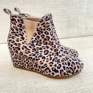 TOMS Suede Wedge Booties Kelsey Leopard, Stretch Slip On, Womens Size 7.5 B