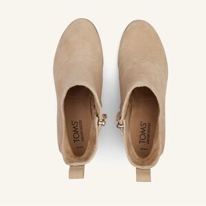 TOMS Sutton Wedge Ankle Bootie Tan Suede Leather Stacked Heel Shoes Size 11 NWT