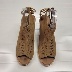 TOMS Tan Suede Leather Open Toe Sandals Heels Size 11