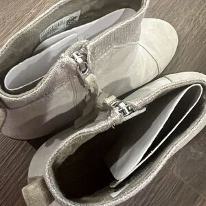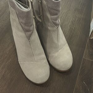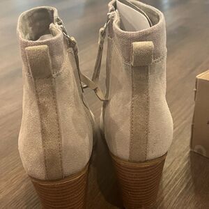 TOMS Taupe Suede Side Zip Stacked Heel Booties Women's Size 8.5