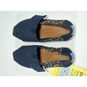 TOMS Tiny Classic Canvas Toddler Slip-Ons New with Tags Toddler Size 9 Navy Blue with Scorpions