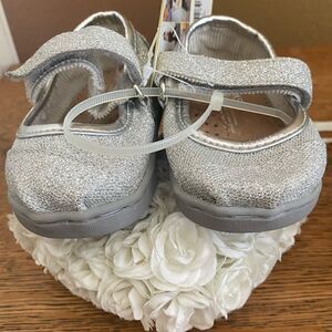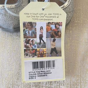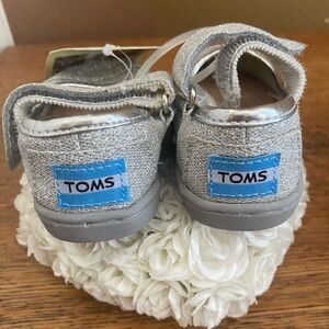TOMS Tiny Mary Janes in Silver Iridescent Toddler Size T2 Hook and Loop NWT. Ships from a smoke and pet free home. No box.