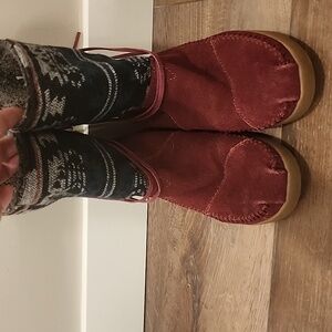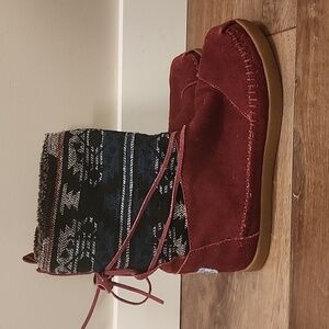 TOMS Toms Nepal Aztec Moccasin Suede Jacquard Fleece Boots Slip On size 6.5