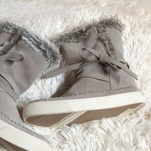 Toms Vista Desert Taupe Tan Gray Suede Boots with Ties. Size 6. Offers always warmly received. Excellent condition. NWOT, some try on wear. Toms Faux Fur Boots.