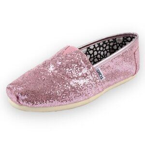 TOMS - WOMENS CLASSIC CANVAS SLIPON SHOES IN PINK GLITTER 8