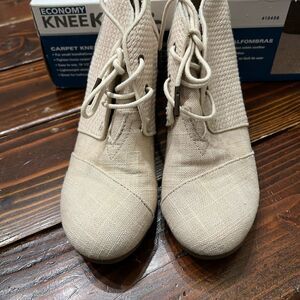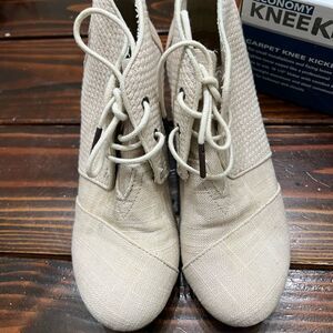 TOMS - WOMENS DESERT WEDGE Boots linen cork size 7.5