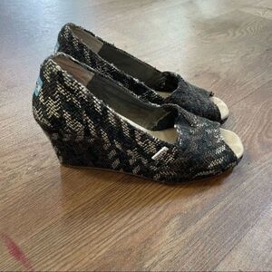 TOMS Wedge Peep Toe Sandals Womens Size W10Black Brown Tan Knit vintage