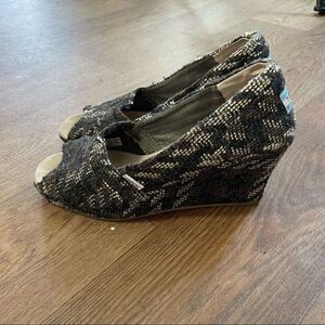 TOMS Wedge Peep Toe Sandals Womens Size W10Black Brown Tan Knit vintage