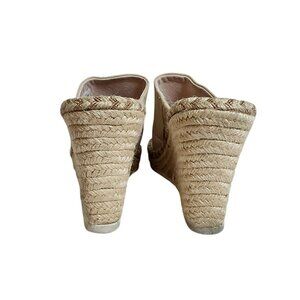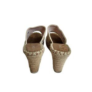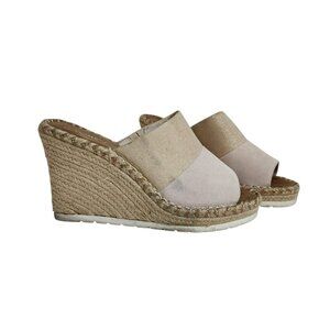 TOMS Wedge Sandals Size 10 Suede Canvas Kelsey Espadrille Slip-On Neutral