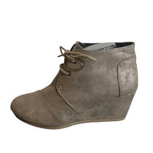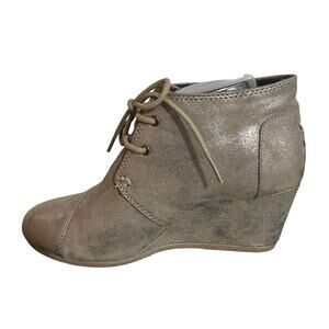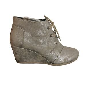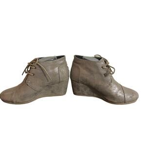 TOMS Wedges Booties Ankle Womens Desert Metallic Gunmetal Lace Up Casual