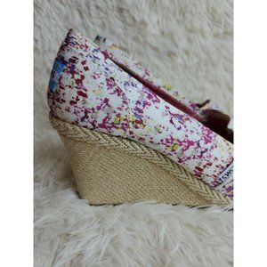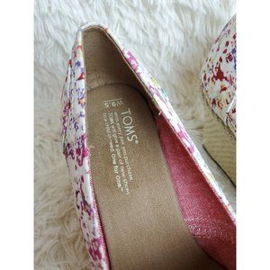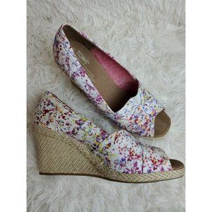 TOMS Woman's Espadrille Shoe Wedge Heel Peep Toe Floral Print Canvas Sz 9.5 NWOB