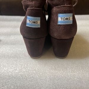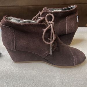 TOMS Women 7 Chocolate Brown Suede Desert Wedge Booties 2.5"