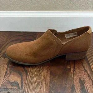 TOMS Women Shaye Brown Suede Low Ankle Loafer Block Heel Bootie 10012472 Size 6. New without box, scuffing on side of shoe from being out of the box, pictures provided