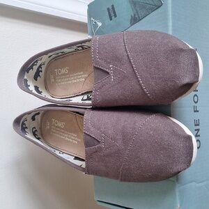 Stylish and comfortable loafers by TOMS. Perfect for casual outings. Easy slip-on design. New with tags and come in original box.