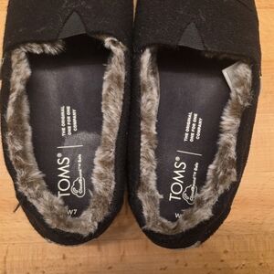 TOMS Women's Alpargata Faux Fur Lined Slip-On Flats Black Size 7