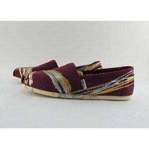 TOMS Women’s Alpargata Slip On Shoes Maroon Gold Silver Paint Stripe Canvas 7.5