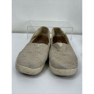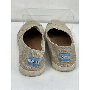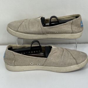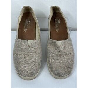 TOMS Women's Alpargatas Slip On Shoe Sz 8 Tan Metallic Canvas Flat