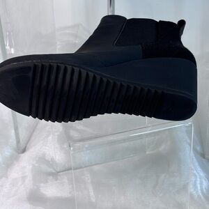 Elegant Wedge Heel: The TOMS Bailey booties feature a stylish suede and faux leather-wrapped wedge with a height of approximately 2 ¾". Perfect for adding a subtle lift and refined touch to your ensemble, blending elegance with practicality.