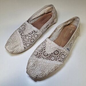 TOMS Womens Beige Crochet Lace Flats Slip On Loafers Shoes Size 10
