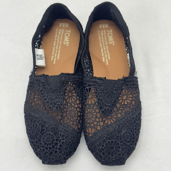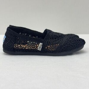TOMS Women's Black Crochet Slip On Shoes Comfort Casual Flats Size 5.5