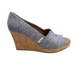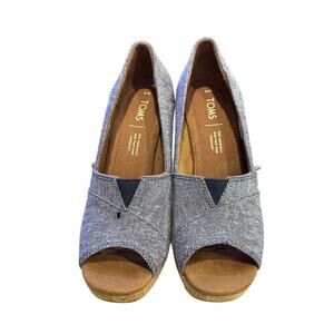 TOMS Women's Blue Chambray Wedge Slip-On Peep Toe Heels Casual size 6