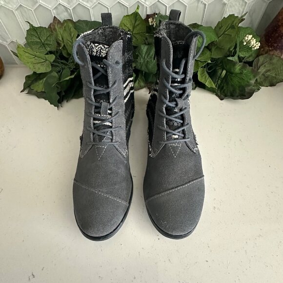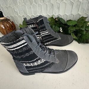 TOMS Womens Boots Size 8 Gray & Black Pattern Lace-Up